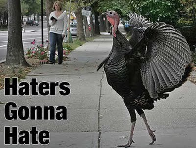After a few white wine spritzers, I began imitating the turkey, throwing my arms in the air and hooting triumphantly "HATERS GONNA HATE!" in some kind of misguided attempt at foreplay.