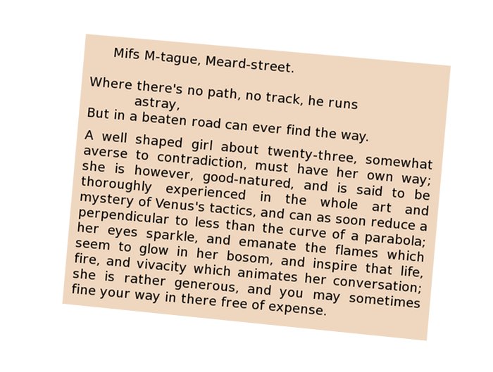 One or two guineas appears the norm, with here and there a more expensive luxury on offer. The genteel Miss Le- above, who was led into sin, is only seventeen and a “has a piece of the termagant about her”, but she commands three or four guineas for her services, which include birching for those so inclined. While Miss - of Wardour Street, who is “but newly arrived” and “darts such irresistible glances as can scarcely fail to engage the hearts of the beholders” will not accept less than five guineas. Mrs Ho-fey, on the other hand, who “calls forth all her powers to give delight with uncommon success” will happily settle for half a guinea.