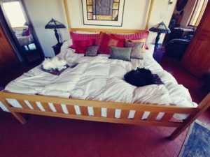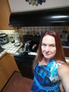 Yesterday I cooked brunch for writer friends Jim Sorenson and Sage Walker. (That’s me in my Orchid Throne apron that the amazingly talented Minerva Spencer made for me. Isn’t it awesome??)