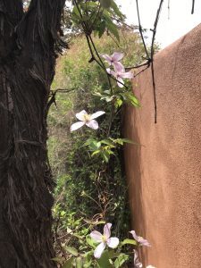 Spring has sprung here fully into summer and the flowers are so lovely! This is my pink anemone clematis that I’m training to climb up the grape vine in the arbor. Love how it’s coming along!
