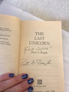 Last week I attended SFWA’s Nebula Conference and got to meet our 2018 Grandmaster, Peter S. Beagle. I legit teared up when we talked and he signed my battered old copy I received forever and a day ago. I felt like a teenager again and all those feelings that led into my early love of fantasy rose up and swamped me.