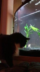 I gave the man an aquarium for Christmas and Jackson finally discovered it has living creatures in it. He’s quite bemused by the concept. This is a still shot from the video I took. Our topic this week at the SFF Seven is tertiary characters who demand the spotlight. Come on over to find out more – and to see the video!