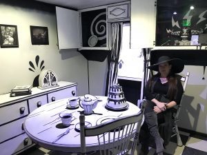 Another photo from Meow Wolf. Nnedi Okorafor and I fell in love with this crazy kitchen and had to photograph each other in it. One of the most fun aspects of this “immersive experience” is not only being able to touch and enter the exhibit, but in a way to become part of it as well. I felt like part of this kitchen and wanted to seem like it, too.