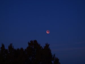 I woke up this morning and got some photos of the full moon setting during a lunar eclipse, the second full moon this month, and during the supermoon cycle. That makes it a super blue blood moon, which is a mouthful. Because our bedroom window looks west, we were able to lie there when we woke up around 5:40am, and watch the shadow cross the moon until totality. I live in a magical place.