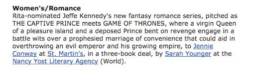 So, we said no on that, but they really wanted me to be part of this new imprint, so we settled on me writing a trilogy for them set in the Twelve Kingdoms world. It will be high fantasy, which means less of a romance arc. BUT, I’m pretty sure it will be Jenna’s story. For those of you who know what that means! We finished talking about that right before the other submission, so that got announced at the same time.