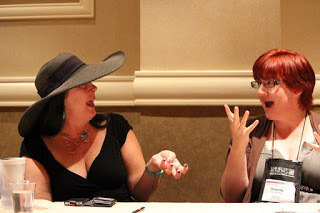 This is one of my favorite photos from the RT Booklovers Convention in Las Vegas last week. Darynda Jones and I were on a panel and I think we were laughing here about people dissing fantasy heroines as unrealistic while loving Conan.