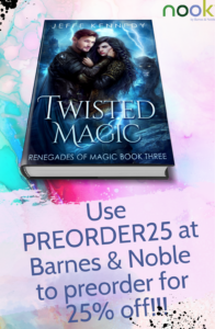Barnes & Noble is offering 25% on preorders for the next 3 days, so if you read on Nook and want a great discount on TWISTED MAGIC, go to B&N and use PREORDER25.