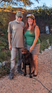 For those who don’t listen to my podcast or otherwise follow me on social media, this week a good friend came to visit bearing a life-changing gift. Mary Robinette Kowal, fabulous author and even better friend (which is saying something), spent a week here with us in Santa Fe. Like my husband, David, her mom had Parkinson’s Disease and, now that her mom passed away, Mary Robinette brought us her mom’s stability service dog, Captain. She spent the week teaching David (and me) how to work with Captain and helping us all assimilate to a new phase of life. It was a surprising amount of work and emotionally exhausting in a way I didn’t predict. But things are smoothing out now and we’re so grateful for this tremendous gift.