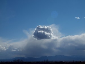 We're starting to get the warmer weather cloud formations again. Some of them are so funny – little self-contained spaceships sailing by.