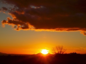 I love how the setting sun is exactly cradled between these two peaks of the Jemez mountain range. Useful to know, in case my calendar breaks.