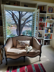 Last night, SFWA did the big online show to announce our Nebula finalists. Killian got to play a special role in a guest appearance as a catterfly, a denizen of Planet Friend. Isn’t he adorable?