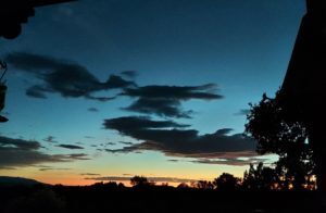 Speaking of August I think it’s funny. This is like a mini mini rant. Ah, it’s a little bit um, cool and cloudy here in Santa Fe this morning not as cool as it was yesterday morning but the clouds are coming in and we may get a little rain. They say by 9 so which means that the mosquitoes are gathering I do have my mosquito candle going here. But yes here in the secret garden it’s ah um, lush but also lush with mosquitoes.