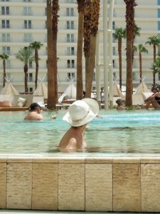 Charlie Bought us two bottles of rose because the first thing we did when we sat down they handed us like the you know the wine list and then the special that was summer of Rose which gets me and Megan where we live and so we ended up having 2 bottles of rose which reader we did not need that second bottle. And then we went to see Celeste barber um who I’m you know, just loved from Instagram australian comedian she put on a very tight show. We laughed all the way through it. It was great. um it was um yeah it was absolutely wonderful. So we all felt a little rough the next morning except for Davis who doesn’t treatak anymore because of the parkinson’s he is like I can’t decide if I’m sad that I can’t drink anymore i’m really glad that I’m not not as rough as you all are it’s like yeah um, so. but but I rallied and Megan rallied and she had gone ahead and gotten a kabana with the american express we’re sorry money at virgin hotel she did research on the different pools so I met her over there and we had ah a wonderful day of just. Hanging out at the pool in the cabana having drinks and it was um, it was delightful and then that evening yesterday evening. No Sunday evening I was gonna say go to be that right? No Sunday evening. It was um. They decided they were not Charlie actually never made it out of the hotel room Sunday he was going to meet us over at the pool and made several efforts and just couldn’t do it. He was definitely overserved I think they had also pregamed before they met us. They’d had several cocktails. So it was great party and Megan and I said as we were hanging out by the cabana that we wouldn’t change the thing because it was just one of those really fabulous evenings. There are times when you regret we didn’t need the second bottle of wine and yet it was so fun. So wonderful. Amazing food. Ah so with oysters on half show. They were so wonderful that they’re like Charlie’s favorite thing. He always orders them. So um. Yeah, they did not make it to dinner Sunday night Megan Texted and said yeah, we’re not leaving this hotel room tonight I said no problem because it’s not like we don’t see them here and so David and I went down and went to ah Matteos at the venetian this italian restaurant and.