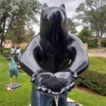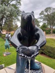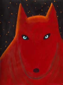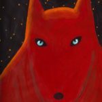Seeing the galleries on Canyon Road I knew that they would. We went visited one of a couple of my favorite galleries the longworth gallery which has a lot of fantasy artwork I thought it was funny because one of the artists said they were featuring heavily. Um. They were really pushing the fact that it was metaphorical. Um and they even had like the owner was encouraging us or the manager you know like they got working there was encouraging us to read these screeds on the sides of the paintings and I know that I have been the one saying that I don’t like. Paintings that are untitled and people are like well that’s because you’re a word person. Jeffie and that’s like yeah but I didn’t I still don’t want that many words. Um I found the metaphorical art I mean it was very obviously metaphorical and I wasn’t quite sure why. We needed to be um, taken by the hand and really hammered about the here is the metaphor in my art now there has to be a balance there right? I I really I liked some of this artist’s work. But a lot of it was just I felt like way too heavy handed I liked the simpler stuff. Um, but it was still really fun to see I love going and looking at the fantasy artwork because it it gives me ideas and that’s always great and we went to another of my favorite galleries. Um Carol Laur Roche and so I brought out the postcard um isn’t that great Carol LaRoche does these wolves and other animals too. But for those of you not on video. This is a stylized wolf in red on a black background with red stars. And the wolf’s eyes are blue and glowing and there’s a real sense of both serenity and wildness to it. Maybe I’ll put that on the show notes. But I may frame this little picture I keep wanting to get a print from this artist. But they’re all like a thousand dollars for a framed print and that just seems like so much for for that. Um, yeah, well they were doing a 20% discount winter sale. But this is called. Under the red stars. Um, yeah so art buying art. So let’s see what else um.