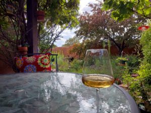Ah, that’s good. Delicious. Today is Tuesday July Twelfth Two Thousand and twenty two and well big news in our household is my mother has COVID. Um, it’s the first time that it’s hit my immediate family I guess guess everybody’s getting it now. Um, um so they caught it pretty early. She hasn’t felt too terrible tired headache little bit of a fever. She is um you know twice boosted four shots. So and they’ve got her on Paxlovid so hopefully she’ll kick it pretty quickly and it won’t be a big incident. Um, it reminded me though of an incident from fairly early on in the pandemic it was after. Walk down had let up. So I think it may have been summer of 2020 and a lot of the restaurants around Santa Fe had opened again. But they’d also created all of these socially distanced outdoor spaces and I went to dinner with. My friends Megan and Charlie and they yeah we went to the Compound and the Compound had set up these tents those you know like the kinds you get for parties. They’d set up tents with tables and them so we’ve been hoping to like. Sit on the patio. You know just have drinks on the patio and or d’euvs and stuff and it turned into this whole. Um we couldn’t because the patio had been taken up by the tents because in case it rained I guess but we were having a good time. And we were talking about New Mexico had a mask mandate very early on so we were talking about people wearing masks and not wearing masks and the young man came up to fill our water glasses and. There was something about where we like we’re explaining our conversation to him. We’re like oh ah, you know we were just discussing masks and we appreciate you wearing yours and because all the servers were really, but we were sort of.
