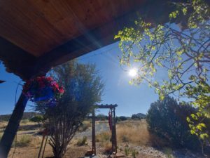 Ah, so it’s been it’s been a thing ah I had a great weekend I kind of finished off with a bang. Oh I should say Monday today Monday bla blah blah it is monday. May second we are fully into the merry months of may which means um, sexy things for those of you who know we won’t get into it even though we are hardly Pg here at first cup of coffee. Yeah, whatever. Ah I did get this secret garden cleaned up if you’re on video you could say it’s looking much better I did not quite finish the vine behind me that needs yet to be done. Might be able to see that I have the hummingbird feeder up I’ve actually spotted hummingbirds. It was so nice to have them back again. Um, and everything is leafing out ah in cleaning up the yard yesterday. The garden I got a really. Nice surprise and I don’t know if I mentioned it here on the show last fall but I was looking back at old pictures of our garden and Laramie, Wyoming where we lived for 20 years and we had had this beautiful. Bleeding heart by the front door of the first house we bought together and it was in the shade east facing and it was gorgeous. It was like a couple feet tall and. I don’t know I might have seen 1 in someone else’s garden but it reminded me I was like oh I love that bleeding heart I wonder if I could grow out in Santa Fe was a little bit of background on this is I do love to garden you guys probably know that already. Although this was here when we bought the house. It is however changed over enough that I think I can start taking some credit for it. But um. Um, I yeah I’ve I’ve always really loved garden and in we had 2 different houses in Laramie where yeah, we really created some some knee gardening type stuff.