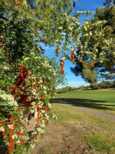 No, maybe not please to stand by all right? sorry about that. Ah, the cream had indeed gone sour does it taste quite as good with the half and half in there turns out that the cream had ah expired on March Seventh who knew and I’ve been drinking it up till last week and it was fine. That’s why I get for only doing little tiny dollops at a time I suppose but apparently left unsupervised for a few days. It went rogue alas. Today is Tuesday oh you know I’ve know this I forgot to put sweetener in it. Okay, we’re having a blooper morning stand by all right I think I’m set now. Ah so much better. All right. Today is Tuesday April Nineteenth and for those of you on video or those of you ah keen to the audio intro I’m back out in the grape arbor um, and so thus. Big chimes again and you know things are greening up out here. The roses are coming up. You might be able to see some daffodils in the background crap Apple tree is starting to bloom. It was so nice being outside in Tucson. That’s why I have been away from the podcast for a few days. And been away visiting my mother who is the one who complains the most if I don’t record a podcast. So um, haven’t had 1 since a week ago tuesday but here I am back in the saddle. It was great being out in the tucson weather flowers blooming everywhere. Yeah, thank you? And yeah, so I thought I really need to make an effort to get out into the grape arbor again which transcript. Really hates that phrase. We’ll see how it did. Um, we’ve had so much wind that they I to throw a bunch of tumbleweeds over the wall because they’ve like blown in and mess things up so clearly I still have I’ve done some garden cleanup I need to do more. Did a little bit at my mom’s house that was fun. Although I’m not sure she appreciated it. She had a um, a volunteer lemon tree coming up where they’d cut 1 down as one does in Tucson I would love to have a volunteer lemon tree.
