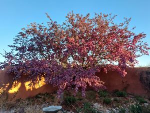 Don’t accurately portray the west at all I was like yeah I know right? and you know we were talking about the tumbleweed thing you know you cannot have a western movie without a tumbleweed tumbling across a road and yet those are exotics. Ah you know say with horses horses are not indigenous to North America they’re they’re an old world. Species ah horses only made it to the american west because the spanish conquistadors brought them. Ah you know so the whole idea of people get very caught up and the romanticism of the wild horses you know and saving the wild horses and oh you know that’s. Part of the natural land to have the wild horses and it’s like well actually no horses double weeds introduced not part of the american west at all and now me with my walled garden here in Santa Fe New Mexico um ah the winds are wafting the tumbleweeds over and piling them up so I actually took a few moments to ah de-t tumbleweed the background but there’s a whole bunch over in this corner. Um, actually you could probably see it if you’re on video if you look over towards the bird bath over there. See all of those tumbleweeds piled up in there. This garden was clean before this but no, it’ll it’ll stop eventually. One would hope I bought. My hanging plants for this summer I’ll show you guys those see look that oh beautiful beautiful petunia baskets sitting there. Um on the floor of the gray harbor because we’re it’s supposed to freeze Saturday our frost free date is may like May twenty second it’s our last frost. And normally it’s not that late. But I called my favorite nursery the other day and what was it Tuesday I called them to find out when they were going to get their hanging baskets in because they have the best ones best ones best price are they beautiful you know and said why’t you gonna get them in and she said oh we’re already almost sold out I was like fuck I was afraid of that because they they do this every year like they don’t have them don’t have them don’t have them and and then all a sudden they’re greenhouse that grows them just a little ways away from here sends them all and. There is like a secret signal you guys that I do not know I’m signed up for their newsletter. They don’t ever send their newsletter They don’t update their website I mean in many ways got to love them right? How do people know so she says come today.