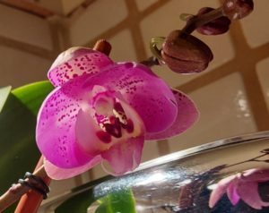 Good morning everyone this is Jeffe Kennedy author of fantasy romance and romantic fantasy and here with my first cup of coffee ah greatly needed. If you are on video. You will see. It is very early here. It’s just now six o’clock am and I can see the sky beginning to lighten out my east window sun is coming. It’s not here yet. So yeah I woke up early and I woke up I woke up at four I went to bed kind of early I went out last night with my friend Megan. Oh I should have said wait wait sorry say it with me today is Friday woo. Almost forgot February eighteenth so so yeah um I went out and saw my friend Megan Mulry last night we had a lot of fun. We had drinks and dinner and it was it was lovely. And and I came home and went to bed and woke up woke up at four and I out and I thought I would go back to sleep and David got up. He woke up. He wakes up a couple hours. You know every couple hours at night and takes more medication because without it. He can’t sleep and so he got up and I was laying there and I thought I was going to go back to sleep and he came back in and said um he said I just want you to know that if you want to get up and work. You won’t bother me and I said well. I go back to sleep and he said okay and so I laid there and I was like wide awake and so I was like oh I guess I’m awake so I got up I thought well I can get a jump start because I’ve got this midday today deadline which it’s nice that he’s aware of that too. I so I guess I’m not going back to sleep and he said um, he said well if he said I’m not surprised. He said if I were you I would be wanting to get to work on that stuff too and I said yeah I guess you know me better I know myself. So. If you are on video. You can see look It’s an orchid. This is my first orchid rebloom I posted the ah photo of it of like the flower stock. Not long ago but look.