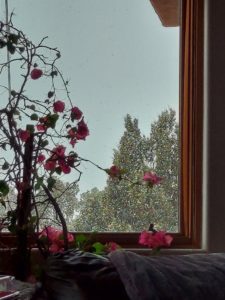 More maybe it’s a more of this um of being tough. You know like you’re very tough and you put up with all of the difficulties of the weather and not having some things not having conveniences and it’s ah it’s a measure of character that you. Put up with all of this stuff and and people kind of compete with each other for like how terrible something is. It’s like oh you know let’s live. They’re like oh I just came up this road with black ice and it was white out and I couldn’t see. I was having to drive by the delineator posts which are the posts along the side of the road. You know that have the little reflectors on them I have driven by the delineator posts more than once because you can’t see the edge of the road or the line on the road. So you’re marking. You know hoping you don’t go off the road in between delineator posts. That’s why they’re there and so oh I had to drive by delineator post to get there and someone else be like oh well that’s nothing I had to go over Togwotee pass and you know blah blah blah blah blah it’s um, it’s a weird kind of competition for who’s overcoming the most. Difficulty. So when we moved to Santa Fe it was just ah, almost an indescribable relief to live somewhere that was not so harsh where the ground. You know, like even if it’s ° here and ° in Laramie Wyoming it’s a totally different ° because the ground stays where we’re here and all of our house plants started growing larger I mean it’s just um, just amazing. But we have snow occasionally. But rarely enough that like when it is really bitter weather which you know last night there was a wind chill advisory out I don’t think they ever give maybe they do maybe they do now but like in Wyoming they didn’t give wind chill advisories because you were just gonna tough it out but you know like here they give a. Ah, windchill advisory and that’s like why go out why leave my house if I don’t have to I don’t want to so funny funny stuff so let’s see um so yesterday yeah I don’t know what was my deal yesterday. Um I did not get my 3000 words reader. There was much wailing and gnashing of teeth I got 578 words although I did see somebody else proposing a challenge saying um, who wants to you know, try to get at least 500 words today.