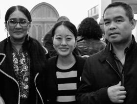 Ananda Devi, Krys Lee, and Andrew Lam at the University of Oklahoma's 2013 Neustadt Festival BanquetCredit Laura Hernandez / World Literature Today