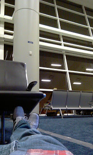 So, yes, for the next twelve hours I was trapped in DFW. I ate baby-back ribs at TGI Fridays, had a few beers, talked to a couple of Marines on leave, had McDonalds coffee, charged my phone for free and then crawled away to a quiet spot in the main terminal and slept on the carpeted blue floor. I could've rode the internal subway all night for kicks, but it just didn't have any appeal. Mini, thankfully, got me a ticket out of there at 6am on a different airline and in the morning I promptly escaped.