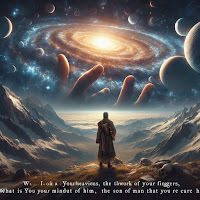 David was wondering about the same things when he compared us to everything else the Lord has created. But you must remember that David saw the universe as created by the Lord in six days. It was not a production of chance or evolution. So he makes it clear in verse 5 that we are created by the Lord. He says, “Yet you have made him a little lower than the heavenly beings and crowned him with glory and honor.”