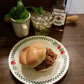 Kentucky Derby Day Eats (Homemade pulled pork sandwich) and a Mint Julep.