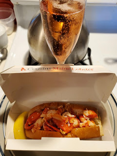 There was quite a bit of decadent food for this MoF. I always enjoy Eggs Benedict on special occasions like any given Wednesday. This year, I found Bruno Albouze, a zany French chef on Youtube who had the craziest video I've ever seen of this recipe https://youtu.be/WM_oTv5EAhY. He also had an actual foolproof method of poaching eggs that worked for me! I had my dish with smoked salmon and English muffins, as usual. I also enjoyed just the toasted English muffins with the smoked salmon and Hollandaise sauce as a late night snack a couple of times later in the week. For the Big Day, I made a new recipe from the same chef – a Triple Chocolate Mousse Cakehttps://youtu.be/MhUB4Us8BIo . I didn't have ring molds, so I had to adjust the ingredients for a small, springform cake pan. We enjoyed the heck out of that cake. I was also excited about the appearance of King's Hawaiian hot dog and hamburger buns http://www.kingshawaiian.com. The hot dog buns were split on the top which meant I could finally have a proper lobster roll. Well, when the lobster tails were reasonably priced, the hot dog buns were sold out. One day, there was a cook half lobster on a Manager's Special. I made the roll on the hamburger bun. It was so good, I was dancing in my seat! Be sure to toast the interior of the bun with butter in a frying pan first. Decadent!!! Incidentally, those King Hawaiian buns are wonderful for hamburgers and hot dogs.