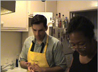 All in all, things went rather well. Jon did what set decorating there was before he went to work. I had weeks to clean and organize the apartment. Incidentally, this shoot finally pushed me to change the apartment from being a place where a sick person was recovering back to an apartment. I find I really like not being surrounded by pill bottles. But I digress. There was food prep for each dish, photographing ingredients and the actors, running the sound and shooting the video and selecting wardrobe. The whole five hours went by in a blur. I hope I seemed competent during the whole ordeal. I did manage to get everything on my shot lists. The sound for each segment was recorded properly. It's not all done perfectly. There will be challenges in post, but they are minor enough that I'm certain I can make the required adjustments on my own. The performances were very good. I think the yaoi readers will get what they were hoping for. The Yuusei character was flirty and really funny. The Misaki character was shy and sweet. Above all, the food was really good. Each dish was consumed immediately after I took the last shot of it plated up. What was really wonderful to hear for this amateur chef was that, for Ryohei, the food turned out like real Japanese cooking he would get at home. In this case, I had the sense to listen to him when he adjusted the recipes I was using while cooking on camera. A great chef knows when to get out of the way! I admit that I'm really jazzed that this went off well.That said, this shoot also drove home that I can't handle running all over a really big sound stage or location for days on end during a feature. I'm going to have to be rigid about what I will be doing on these projects. But I am pleased to know that I will be able to have some role. That wasn't really clear until this past Friday. Yeah, I'm jazzed.