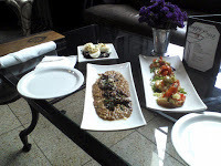 I love it when I go out with a totally wholesome activity in mind and end up in the middle of something decadent and potentially naughty. I set off to the Culver Farmer'sMarketwith my usual list of items and my lists of items to browse for future purchase. This time, I had long-time bud, Marie Lecrivain with me. Marie is co-editrix of Sybaritic Press with me. She is also the founder and editor of Poetic Diversity, a notable and long running litzine. Marie is a sybarite, like myself. Thus I was not surprised that she managed to find some delightful treats I had overlooked during my many other visits. I knew there was a groovy mushroom booth called LA Funghi. They have truffle oil! And they had something really exotic called truffle salt. I'm waiting for information on what that's like to cook with. Many wholesome things were purchased. Okay, the rum infused, mini bundt cakes weren't exactly wholesome, but they were really yummy! From there, we went to the Culver Hotel for a beverage. This is a historic hotel that once housed the actors who played the Munchkins in The Wizard of Oz and was once owned by John Wayne. Thee were a half dozen pairs of ladies having tea from pretty ceramic pots and lovely treats on tiered trays. I was thinking of having something like that when our server announced that it was nearly happy hour. That meant that the Dirty Harry Martini I'd been eyeing on the menu would be half off. Decision made! We had a long, lovely chat while enjoying impeccable drinks and some delicious treats. The Month of Fun has begun! And I was very tickled that it began with Marie.
