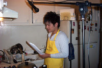 As I said a blog or two ago, I did a casting breakdown and signed a four actor pool. I knew that I could probably only handle shooting one or two segments at a clip. I'm hoping to do a few shoots and get as many segments in the can that I can before I'm forced to move on to the upcoming projects. I also expect these very talented young men to move onto bigger things fairly quickly. I must make hay while the sun shines. For the first shoot, I picked a beef curry dish to promote the manga, Again Tomorrow*. The actor I chose to play Yuusei (upper left), the handsome leading man with amnesia was Donal Thoms-Cappello (below right) who is great looking and resembled the manga character. The other was the next dish I'd been planning to film anyway, Tonjiru or Pork Miso soup. The actor playing Misaki who made the dish for a tutor that would later become his lover in Junjour Romantica was Ryohie Watanabe. This actor is actually Japanese and has more than a passing familiarity making that dish. A third actor, Kevin Chambers (He's left in the apron being geeky. He's also about to eat that whole bowl of stew.), agreed to come by for a photo shoot. While here, he read the lines from the voice over announcer who is the antagonist in the videos. That was helpful for the guys on camera, and really kind to me. And I was most lucky to have make-up maven, Cat Elrod, in the house. Aside from being highly skilled at her job, she is always a delight to have on set. She even helped me do the dishes!