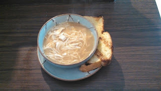 Luckily there was lots of good food that I could enjoy most of the time. We really enjoyed the Thanksgiving leftovers this year. The turkey was humongous. And unlike most people we know, we actually enjoy the leftovers as they are. There is no need to get all Iron Chef to transmute such a tasty meal. And then there were the turkey sandwiches. They were just sublime. We had enough turkey that Jon had sandwiches for lunch all the next week. However, I had a hankering for something else. I really wanted to back engineer the sublime cream of potato soup Marie and I had at the Crème de la Crepea few weeks ago. It was very close to vichyssoise which is leek and potatoes. I was fairly sure I could back engineer it. I figured that since the company founders were from more country parts of France, chances were that lardons figured into the soup. It did have bacon as one of the garnishes. So, I sliced two pieces of slab bacon and cooked them until crispy. I cooked the leeks and other veg in the rendered fat. There was also some good, homemade stock on hand. It was really close. I think I needed a smokier cut of bacon to really nail it. Though my effort was quite tasty. I made the croutons by tossing cubed baguette bread with olive oil and toasting them on a sheet pan. I was really stoked. I've never had a back engineering effort work so well.