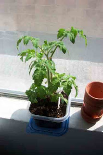 I have a tiny tomato on my lonely tomato plant. (It's on the lower right). That was such a relief, because I was really concerned that I needed bees to pollinate the flowers. Unlike Jon, the notion of letting bees into the apartment just did not appeal to me. That sure did tickle my father though. He's quite the urban gardener. He got quite the chuckle out of that proposal. He explained that tomatoes are self pollinating somehow. They've been developed that way, because bees are so scarce anymore. I'm fairly pleased at how strong that plant is especially compared to the last time I tried to grow something. I may get a mini herb garden to keep it company. I know it sounds weird, but it just seems like the plant is lonely all by itself. UPDATE! It's been days since I started this blog. I now have a little thyme plant to keep the tomato plant company, and supply me with thyme. That's my favorite herb.I've been having trouble keeping up with all the blogs I need to post over weekends. I'm considering moving this blog to mid-week when I don't have a bottleneck. I'll be having some really busy weekends in the next few weeks, so that may be prudent.