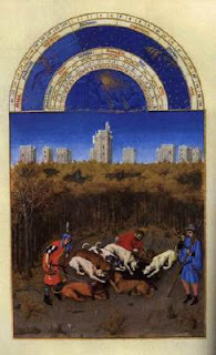 Hunting was frequently portrayed in art and in literature. The month of December was often shown in illuminations, symbolized by a deer or boar hunt. In the poem “Sir Gawain and the Green Knight” there are several hunting scenes, each vividly described.