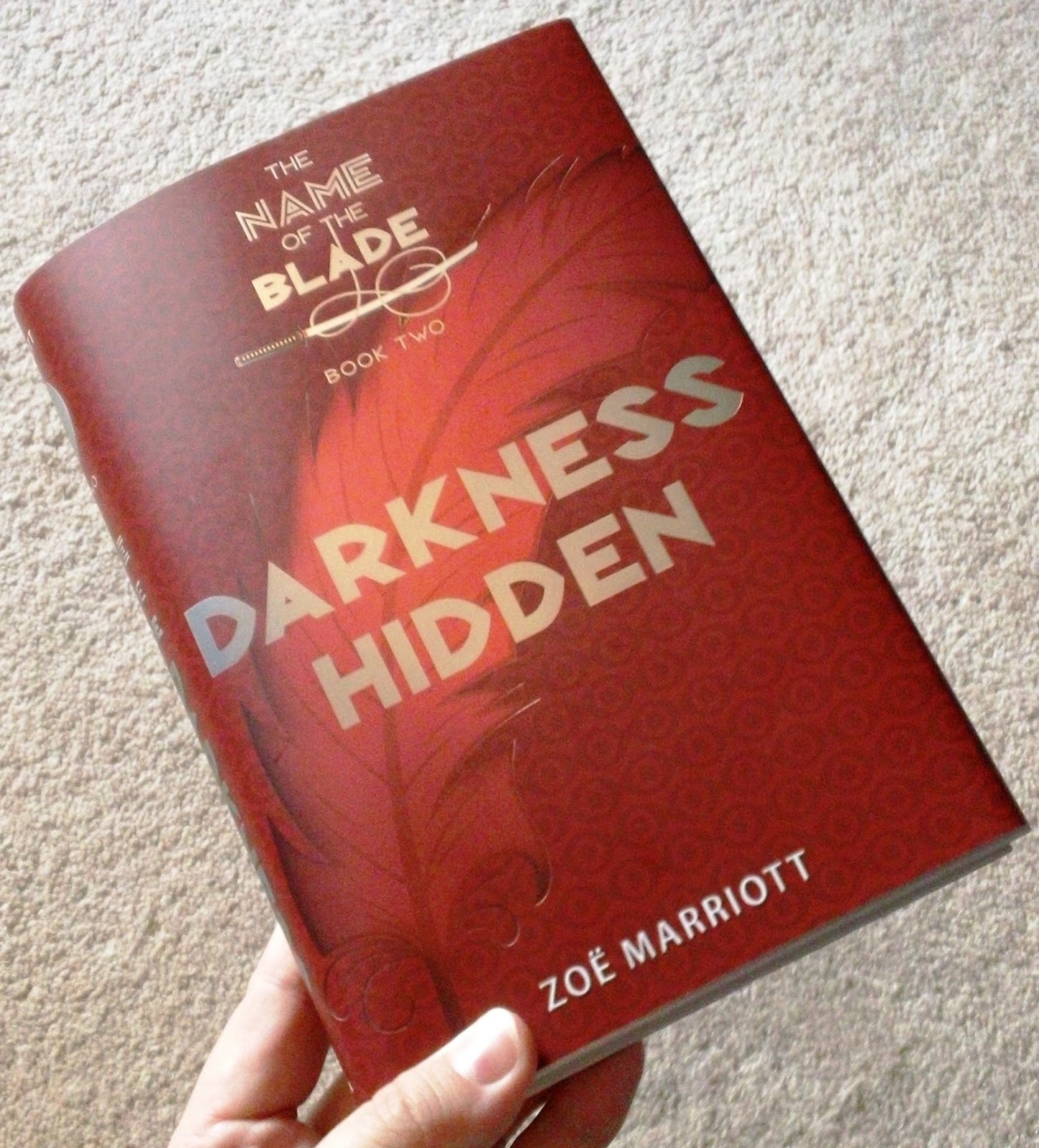 Yes, it's the US dust jacket - brilliant blood red with red and silver stamped foil and the Name of the Blade logo (which, I just will never ever get over having a logo, hee hee!).