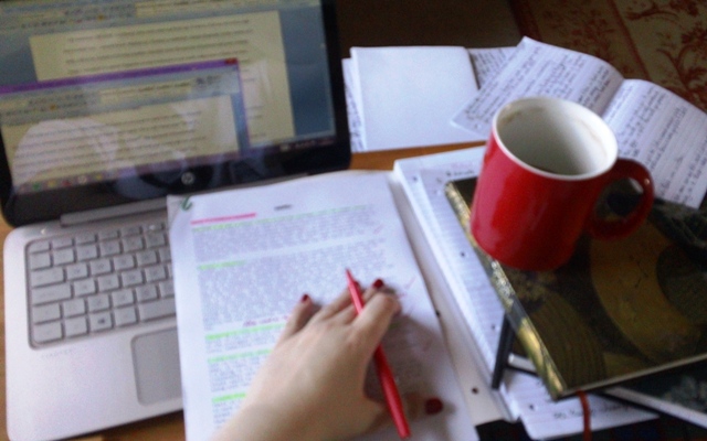 Sunday morning... no rest for the wicked!It occurred to me yesterday that whenever I am editing I always feel a very strong urge to do my nails blood red. I'm not sure if this is because I'm metaphorically ripping the guts out of my book and want to look the part, or if wielding a red pen just reminds me how fond I am of the colour scarlet, but either way, here's proof of my Freudian slip. My nails also match my precious extra-large coffee mug. Coincidence? I think not.