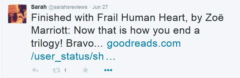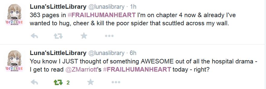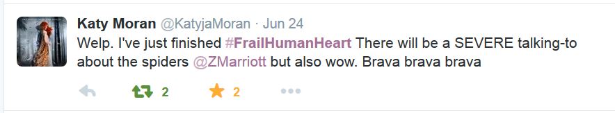 That's it, that's all you have to do - selfie with THE NIGHT ITSELF, and email or tweet it to me. The first ten people to do this get the signed book and swag. And I really hope that when FRAIL HUMAN HEART comes out you'll join in with my excitement, that you'll get hold of a copy, and talk about it online if you enjoyed it (or even if you didn't) but that's not required. It's as simple as that. To recap: