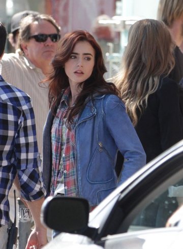 Clary and Isabelle and Alec! Whaaa! The first image shows us Clary's gorgeous red hair, and I'm so delighted because all the images of Lily Collins until now - even after she arrived in Canada for pre-production - have shown really dark tresses, almost black. I was a little worried that they'd buy into this trend of brunette heroines (ala Twilight, The Vampire Diaries, The Hunger Games) and try to fob us off with a few auburn highlights. But I needn't have been concerned. They have kept the tone fairly dark, but added the most beautiful vivid red shade over the top. It suits her really well and I adore the contrast with her pale skin. It's *so* Clary Fray.