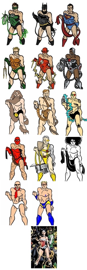 And how is that? Well, to sum it up, let's take a look at this lovely little poster (which I know you've all probably seen before) which puts a series of male comic book characters in the same pose that artists chose for Wonder Woman (with WW herself at the bottom for comparison):