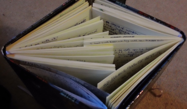 And here, just for kicks, are a couple of shots of the two notebooks that I have filled up writing Book One of Big Secret Project, and in which the enchanted words THE END are scribbled out in blue pen - one of the most beautiful sights a writer can ever see.