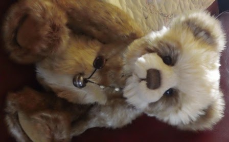 And beautiful fur - two tone in both caramel/chocolate and vanilla/chocolate. I've never seen a bear quite like him before, and I just couldn't resist. That'll teach me to walk past the bear shop on my birthday!