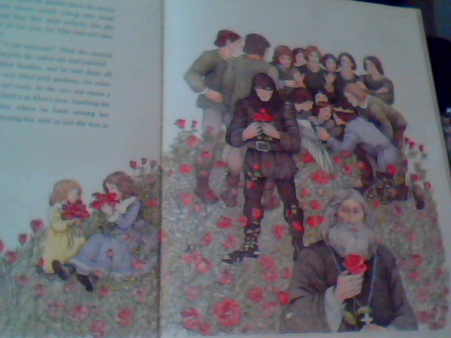 This is one of the final illustrations in the picture book. In the original fairytale, the heroine is about to be burned at the stake by her husband the King! She just has time to throw the nettle shirts over her brothers before the fire is lit, and when they transform back into princes, the heroine is cleared of all charges of witchcraft, and the pyre where she was to be burned blooms with roses. That certainly does NOT happen in The Swan Kingdom, but this image of the roses blooming at the moment of the heroine's triumph stuck with me, and turned into the legend of the King's Rose, which blooms when...well, you'll just have to read the book to find out!