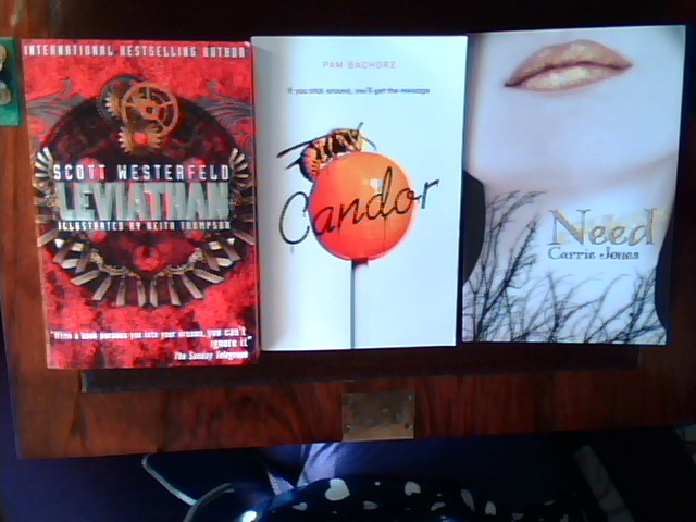 The thing that strikes me most, looking at all these books (aside from how much I am dying to read them) is how individual and beautiful they are. I've been seeing lots of blogs lately that complain all YA books look the same, that bland photo covers are taking over, and saying that the art of cover design is dead. Well, I admit there are a lot of paranormal romances with similar covers on the shelves right now, but...seriously? Have these guys SEEN the cover of Candor? Or Mercy, or Leviathan or Knife? Cover design is clearly alive and well.