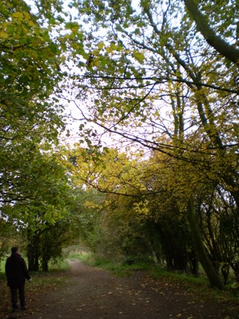 This was the start of our walk. Just to give you an idea of scale, that is the back of my mum, who is a lady of average height. These pictures, by the way, really don't do justice to the glowing gold, amber and red of the leaves. Something to do with the quality of the digital camera and it's photons.