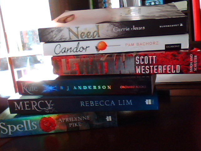 You're drooling right now, aren't you? It's okay. There's no shame in it. The thing that strikes me most, looking at all these books (aside from how much I am dying to read them) is how individual and beautiful they are. I've been seeing lots of blogs lately that complain all YA books look the same, that bland photo covers are taking over, and saying that the art of cover design is dead. Well, I admit there are a lot of paranormal romances with similar covers on the shelves right now, but...seriously? Have these guys SEEN the cover of Candor? Or Mercy, or Leviathan or Knife? Cover design is clearly alive and well.
