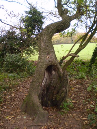 Here's a tree I always stop to look at when I walk in these woods. Quite often you'll find little garlands of flowers or leaves draped over it, or sometimes empty snail shells. Sometimes you even find seashells. This wood is nowhere near the sea! So I'm pretty sure it's a fairy throne or something. I always make sure to nod respectfully at it, and put back the garlands or shells before I walk on.