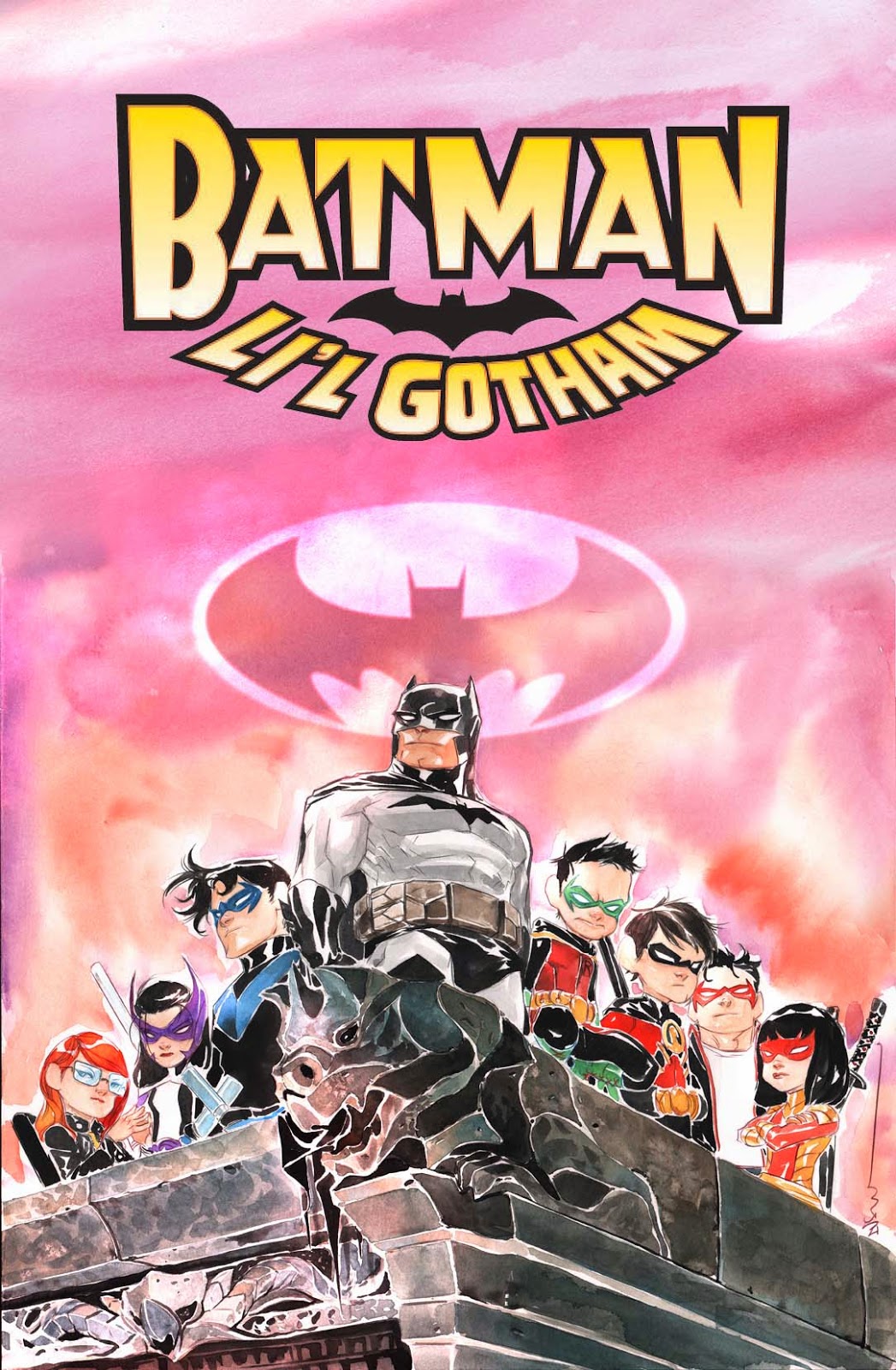 For the very last Li'l Gotham story, I'd had the spark of an idea very early on. I think early in our run after the book had found a very excited and vocal audience, it sort of dawned on me that it would be nice to really think out a nice ending that would wrap our run. To really stick the landing. It's very rare for creators to have a chance to plan an exit long in advance. Usually a book gets cancelled prematurely or the creators pulled from a book with very little time to wrap things up to their satisfaction. So as we went along, I know I was always nervous about wanting to find out exactly when we'd finish. Was it going to be the original 12 stories, the expanded upon 24, or even possibly more after that? I wanted to have a story in the bag so when the time came, we could present it as the last one.