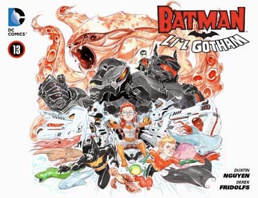So what does the future hold? Our first trade paperback collection is hitting stores, so all these stories will eventually be collected. I think the sales of these can help determine if there's enough demand to bring back the series. And we're going to get some Li'l Gotham action figures coming out this year as well. And hopefully those do well enough to continue past the initial four being offered (I totally wanna get a Li'l Gotham Mr. Freeze…make it happen)!Out of the Li'l city and back into the big city again.