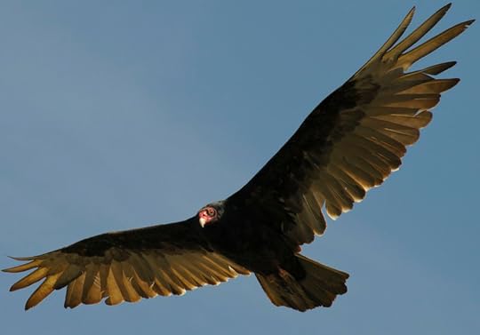He added, “But the large bird we saw was almost black in color, white ring around its neck, white stripe along its wings edge, and VERY LARGE! It did not move its wings either, it just glided. I have saw turkey vultures before. In a way is does resemble it. But the size and colors did not! This thing put a turkey vulture to shame, in size!”